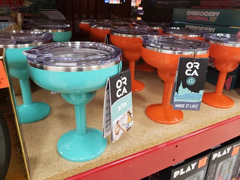 I admired a giant margarita tumbler — like a wine tumbler, only larger and more vulgar.